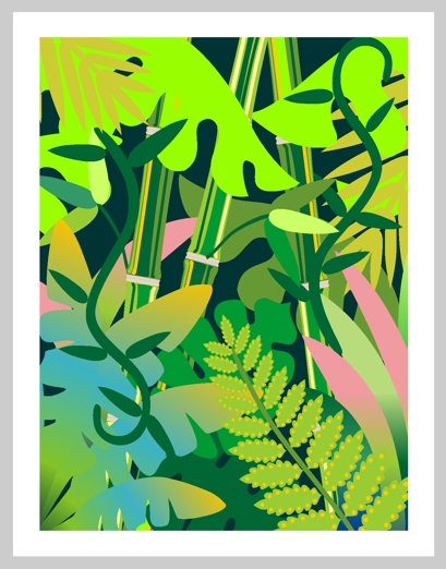 Fantasy rainforest, jungle illustration note card.